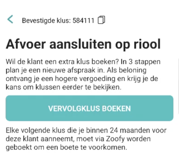 Na betaling kom je op de pagina van de afgeronde klus en zie je info over de klus. Hier krijg je de kans om in overleg met de klant, meestal op locatie, snel een nieuwe vervolgklus te boeken!