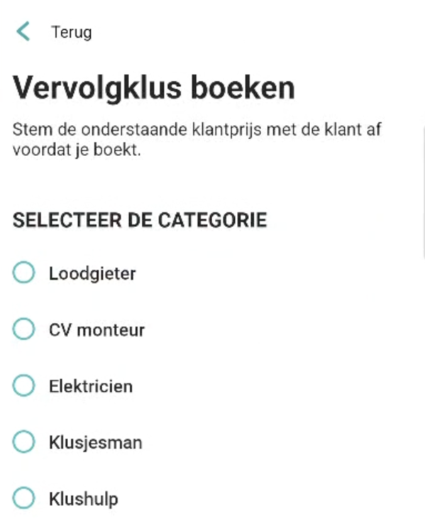 Heb je een klant onlangs blij gemaakt? Pak direct je kans door een volgende klus aan te bieden en direct in te boeken op locatie. Met onze nieuwe Vervolgklus-functie gaat dat supersnel. Gebruik de functie en krijg sneller nieuwe klussen in je overzicht!
