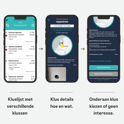 - Klusdetails – Bekijk wat de klus inhoudt en wat er nodig is.